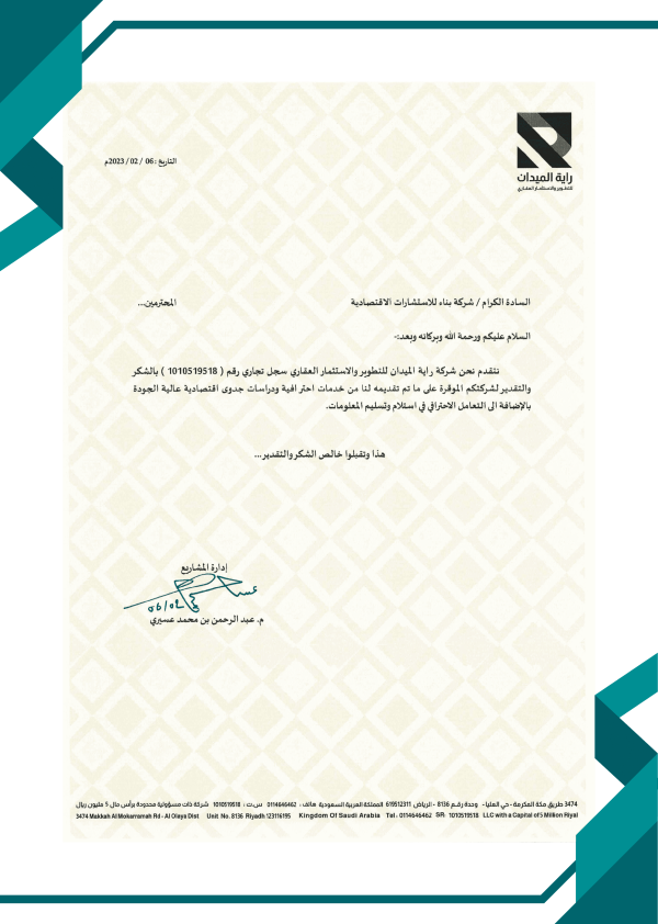 الاستثمار الذكي يبدأ بدراسة جدوى معتمدة واستشارات اقتصادية من ” بناء ” تحوّل الرؤية إلى واقع ناجح.