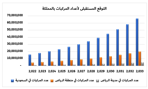 التوقع المستقبلي لإجمالي عدد المركبات المسجلة في المملكة